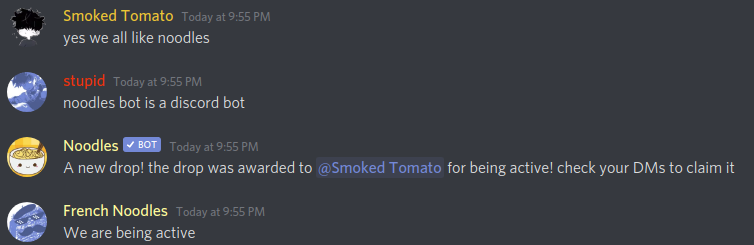 Drops are a Noodles bot feature made to make your server active, we have complex algorithm that knows when a chat is active and rewards users accordingly, you can always turn it off if you want as noodles is fully customizable