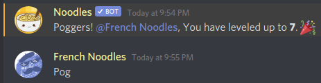 Want chat to be active? look no further! Noodles also offers a leveling system where members can compete to be the most active users of your server!