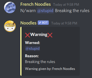 Other than fun, Noodles also wants your server to be safe, thus it has lots of commands you can use to protect and moderate your server!