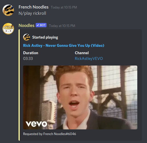 Music is always fun, alone or with a group, thats why Noodles offers a music system where you can either type the name of the music or just send a youtube link and Noodles will deal with the rest!